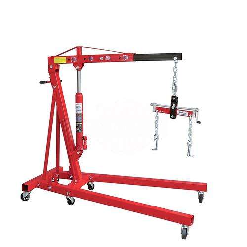2in1 3 Ton ENGINE CRANE WITH LEVELLER This 3 ton folding hydraulic jack engine crane, can conveniently be manoeuvred and stored in any small space or corner of a workshop / garage. Tested and certified to CE standards, with an 8 ton heavy duty lifting ram, this engine crane has 4 positions 500kg, 1000kg, 1500kg and 2000kg. This engine crane has a wide base for maximum stability. • Capacity 3Ton • Working range of boom 1050-1590mm • Lifting range 0-2360mm • Weight 90KG • Designed for shops with limited space. • .Folds for easy storage. • Heavy steel construction for maximum durability. • Boom is reinforced to increase strength and eliminate flex. • .Includes 8-ton capacity ram. • Heavy-duty steel casters for easy positioning. • Front casters include a safety brake to prevent movement. • Telescopic boom provides 4 positions. • Includes heavy steel hook with safety latch. • Wide base for maximum stability. • Foldable Engine Hoist: When you're done, simply fold the engine hoist up for easy storage. Its compact design occupies minimal space, leaving your garage or workshop neat and tidy. • Upgrade your repair game today with our innovative 2-in-1 engine hoist! • 24Months Warranty • Spares and Servicing Available